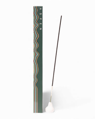 This bright, wintery luxury incense brings the crisp scent of Fir needle brings the outdoors in, while vetiver references the earthiness of Aspen’s alpine woodland, balancing this elevated blend.  Myrrh adds a complex spiciness and the essence of campfire provides a woody base, evoking the deep satisfaction that comes after an energetic day shushing off-piste.